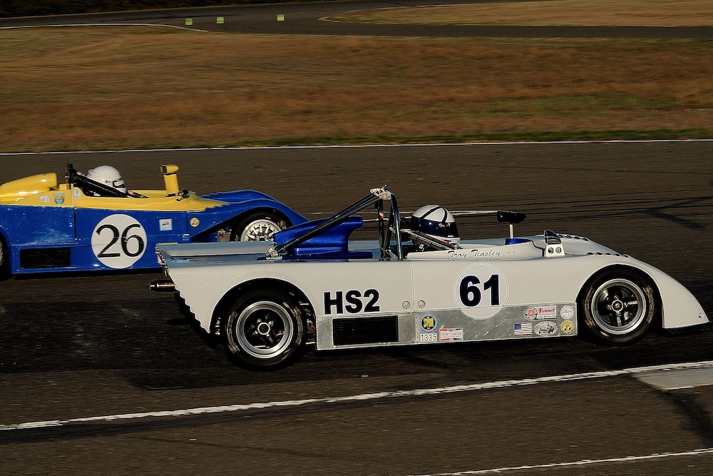 We got lucky this weekend with absolutely great weather! Lows in the 50s, highs around 80, clear skies and no wind, and with more track time than I could handle (never said that before), it was a great way to finish off the season. I had no tire, gas, or strength left at the end and gladly put Miss Lola away for the winter. CSRG ran this 3-day event with two Practices, two Qualifiers, four (!!!) Flag races, a one-hour enduro, and lunch time mechanical picnics. Now that is a GREAT SCHEDULE!